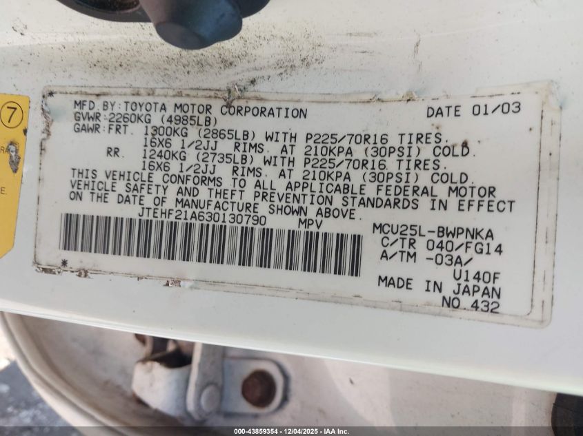 2003 TOYOTA HIGHLANDER V6