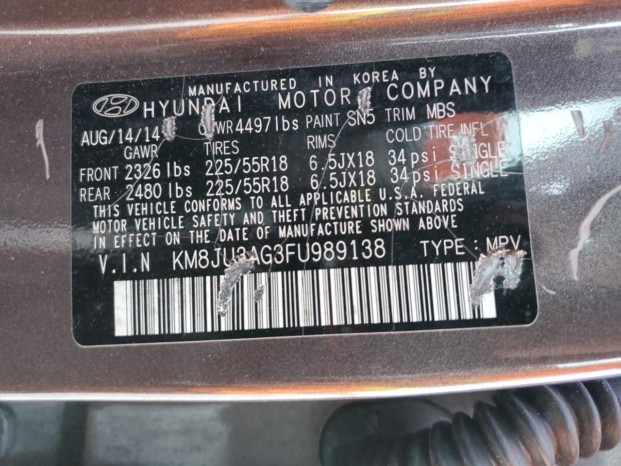 VIN: KM8JU3AG3FU989138