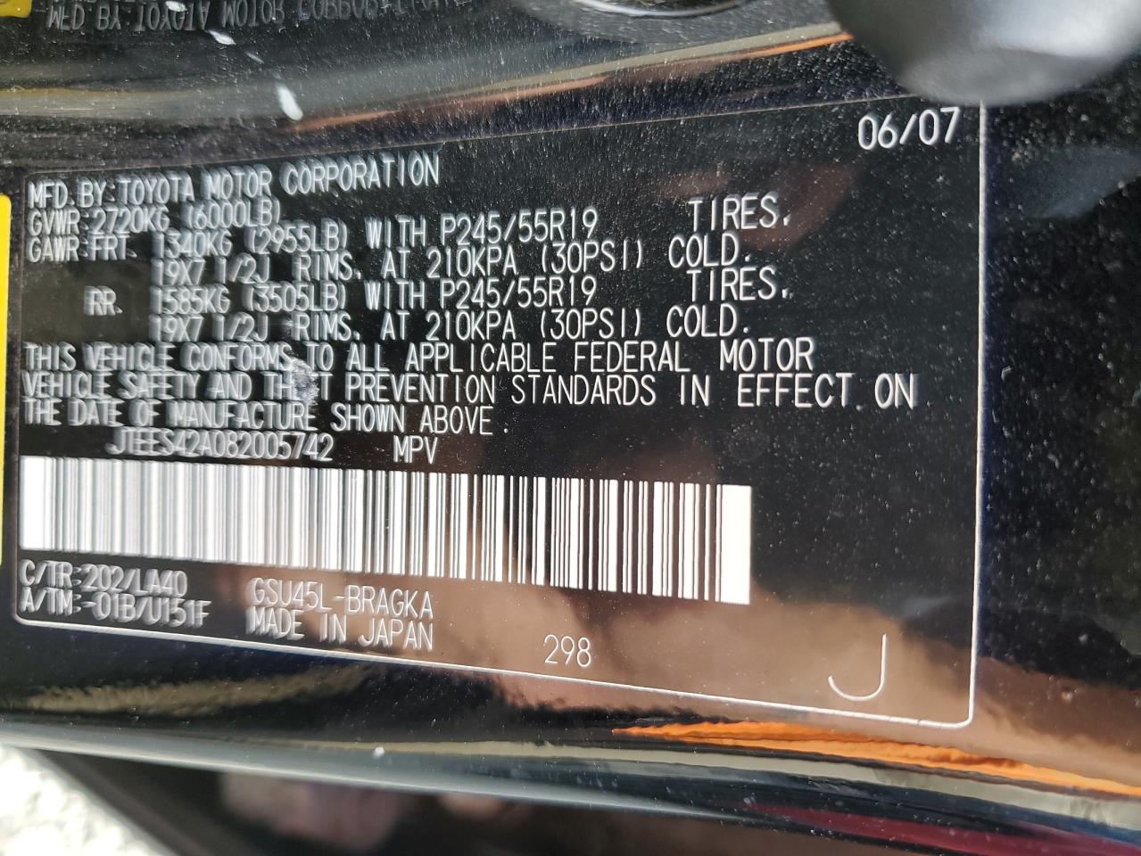 VIN: JTEES42A082005742