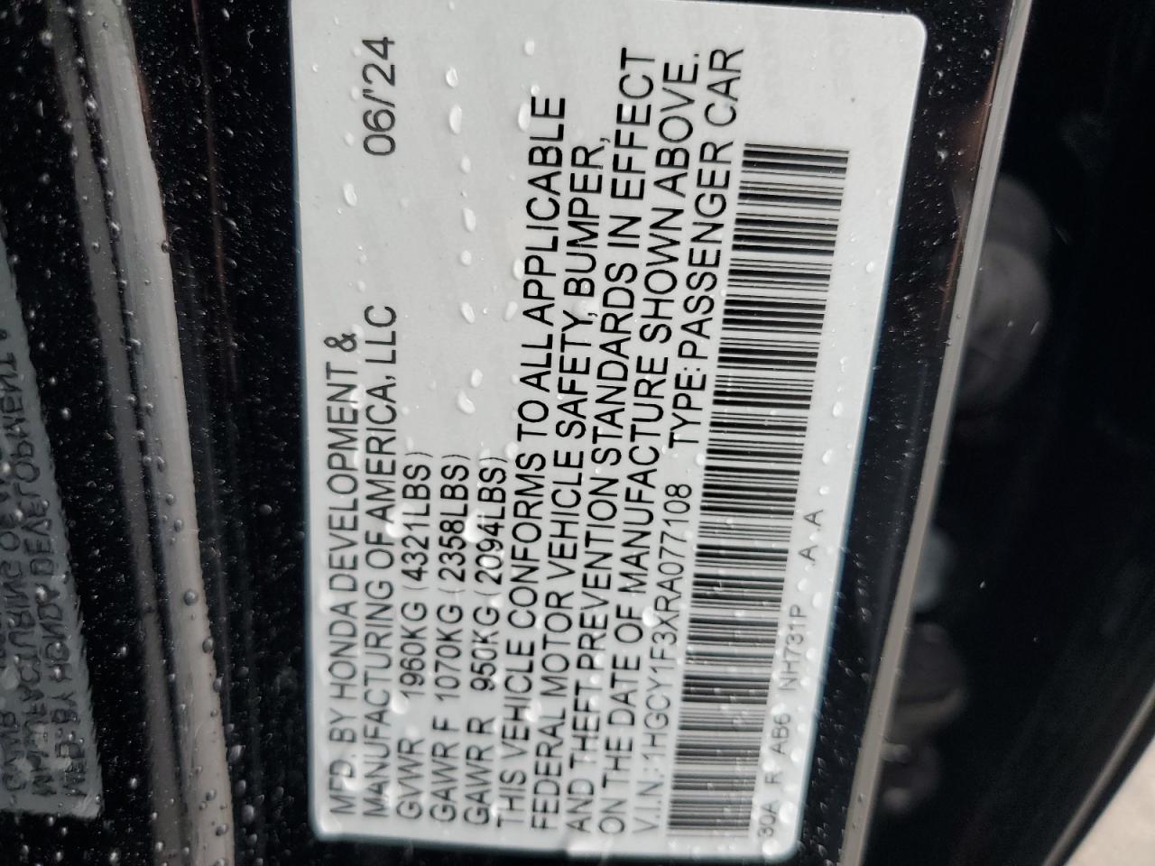 VIN: 1HGCY1F3XRA077108