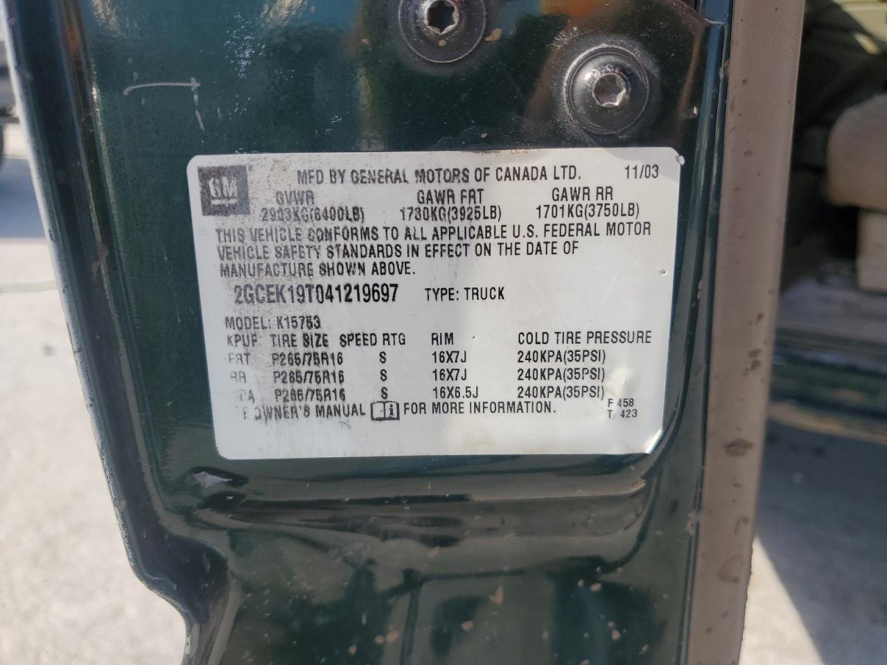 VIN: 2GCEK19T041219697