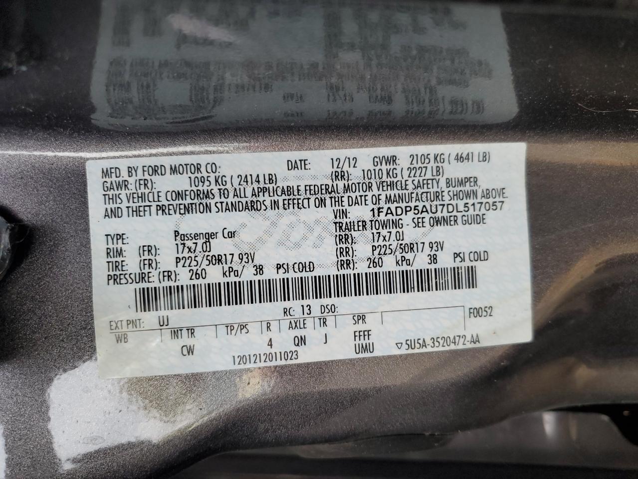 VIN: 1FADP5AU7DL517057