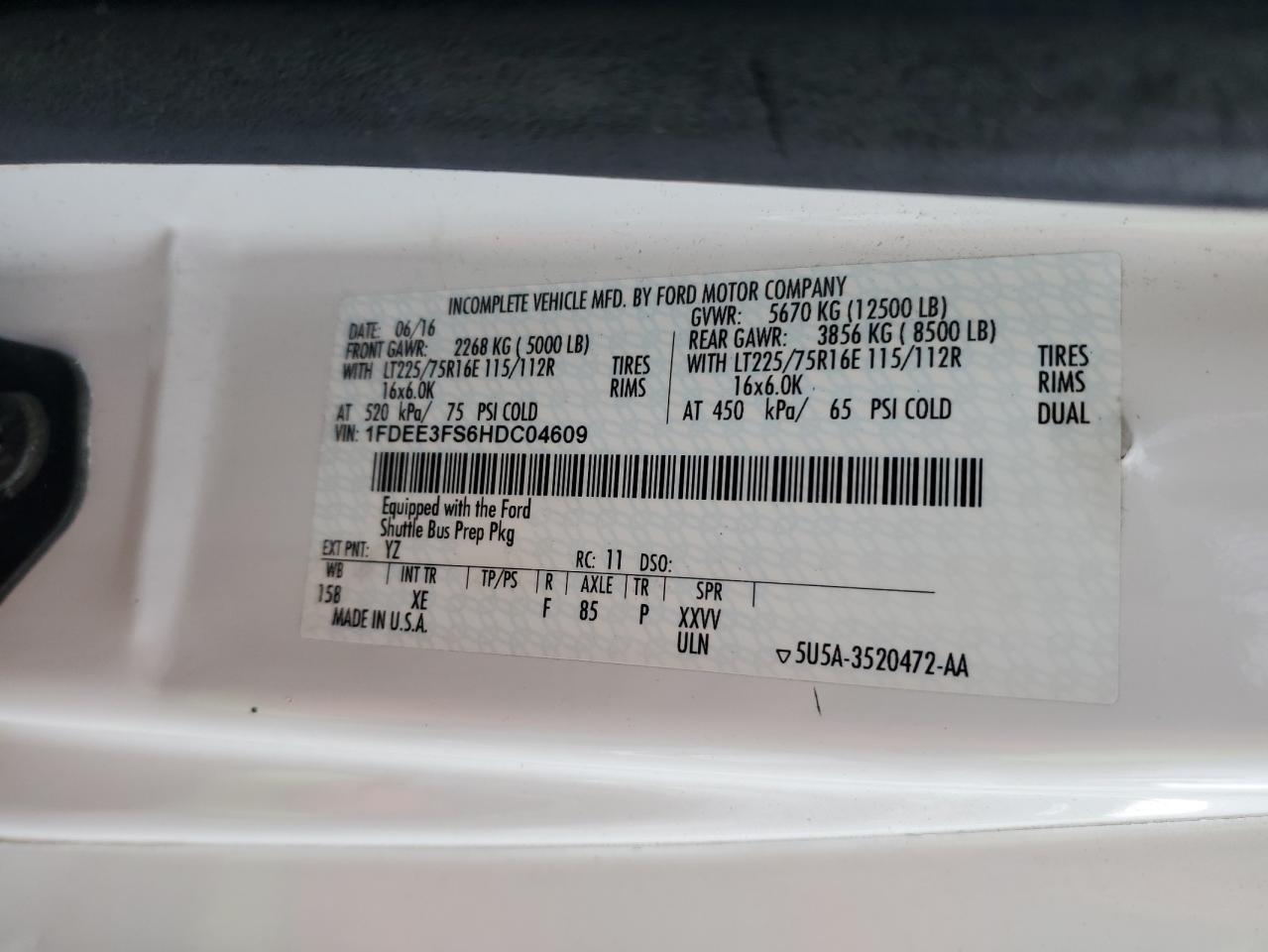 VIN: 1FDEE3FS6HDC04609