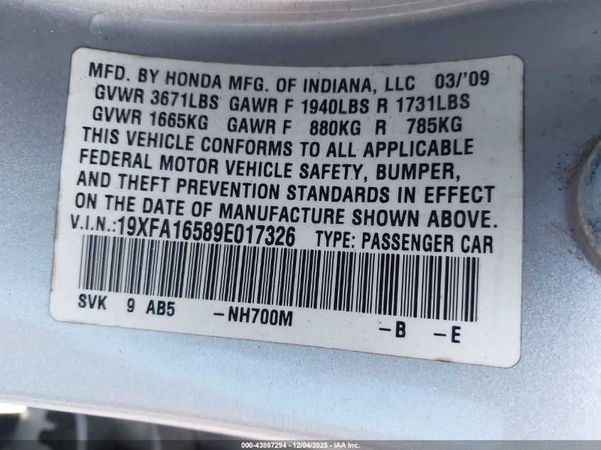 2009 HONDA CIVIC LX