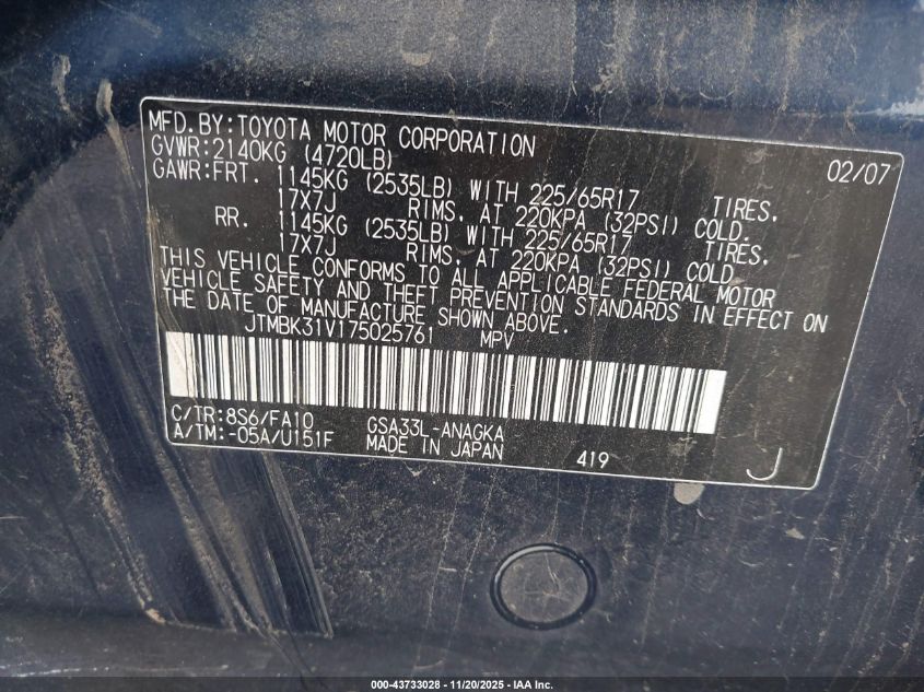 2007 TOYOTA RAV4 LIMITED V6