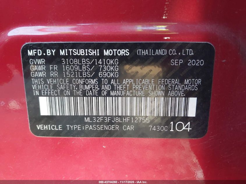 2020 MITSUBISHI MIRAGE G4 ES