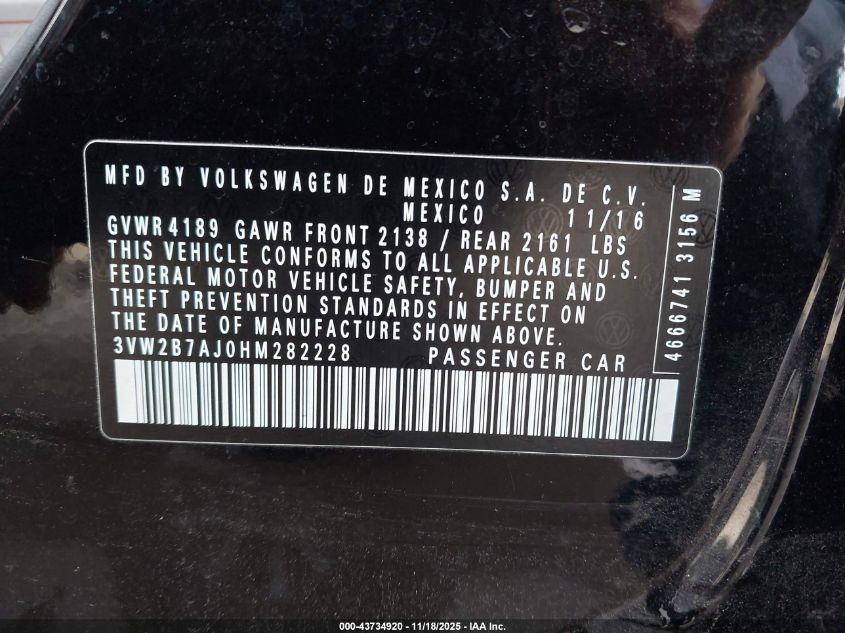 2017 VOLKSWAGEN JETTA 1.4T S