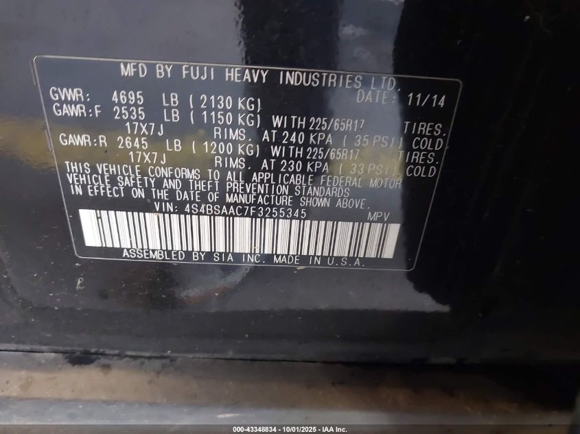 2015 SUBARU OUTBACK 2.5I