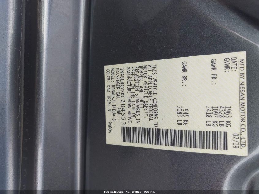 2019 NISSAN ALTIMA 2.5 SR