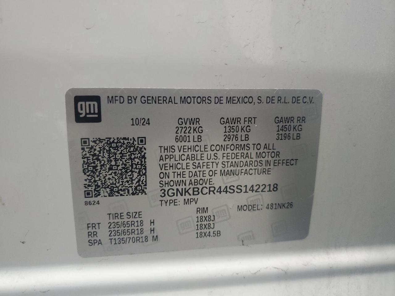VIN: 3GNKBCR44SS142218