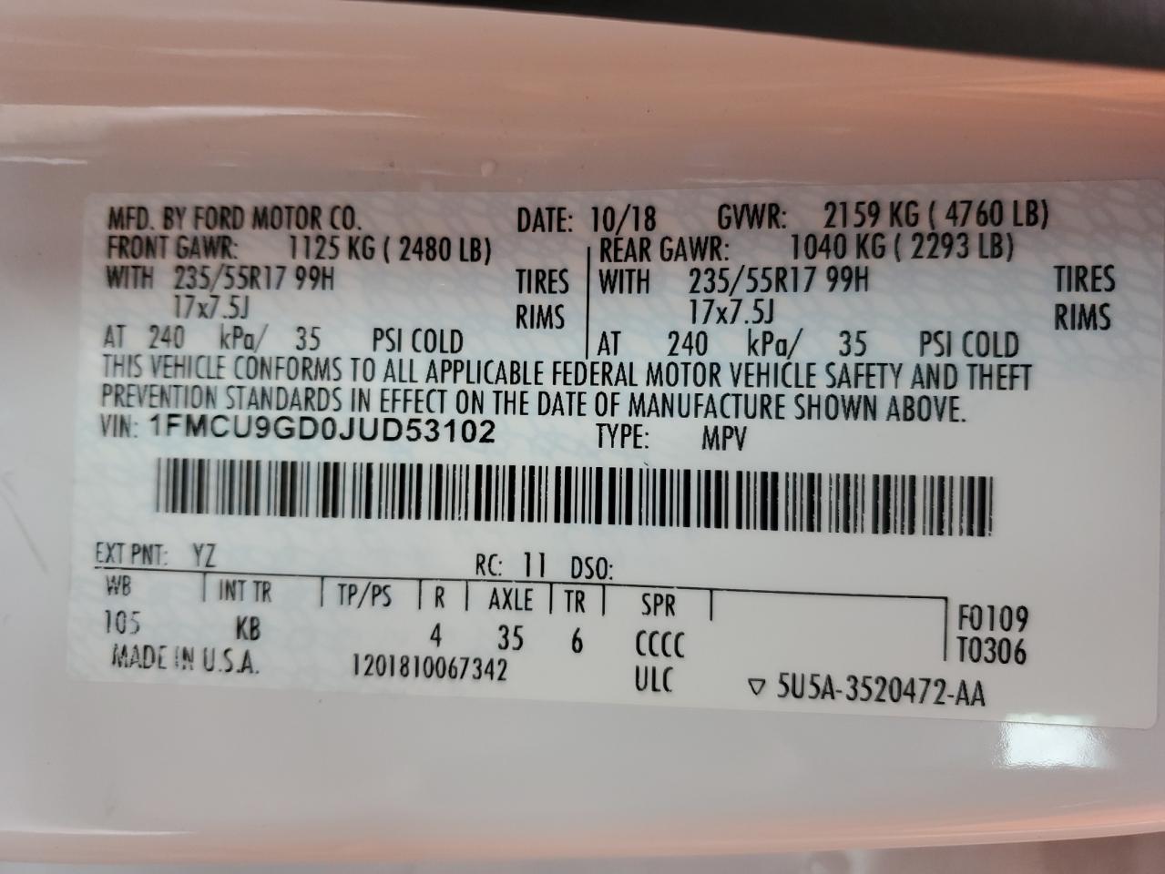 VIN: 1FMCU9GD0JUD53102