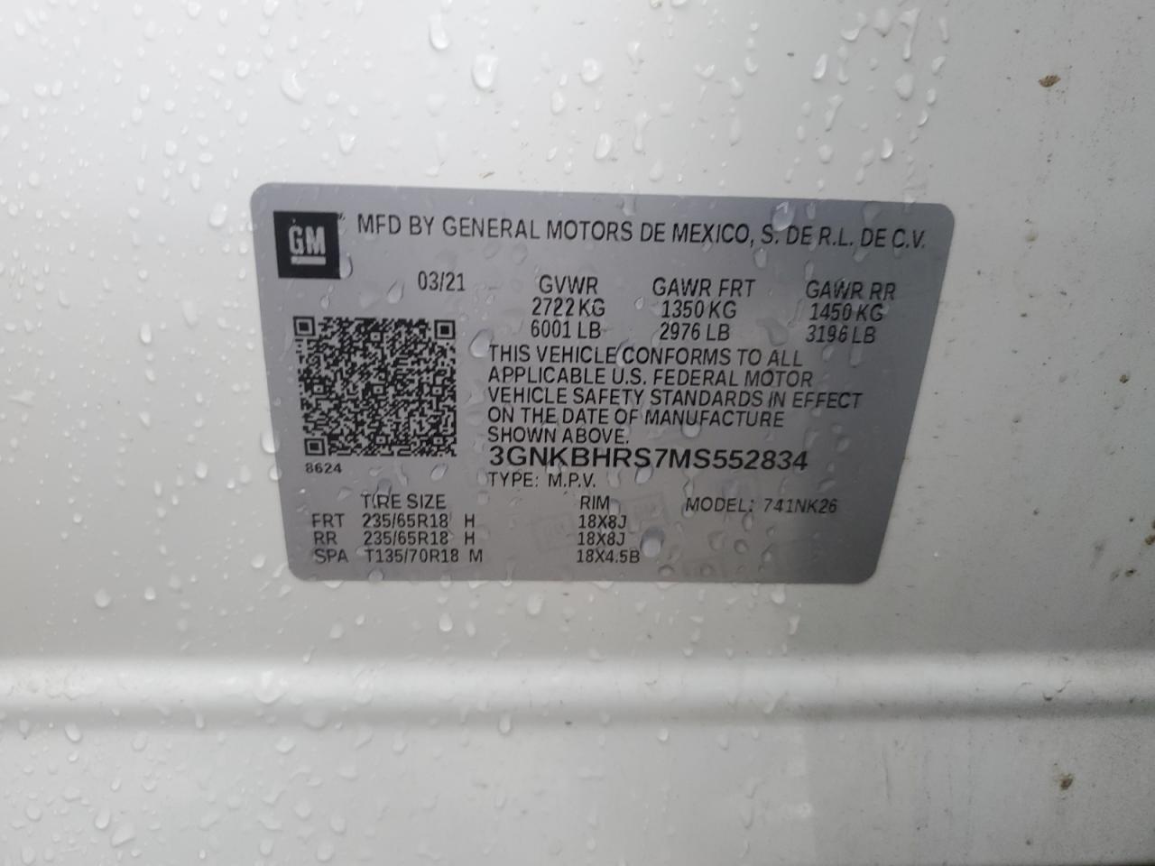 VIN: 3GNKBHRS7MS552834