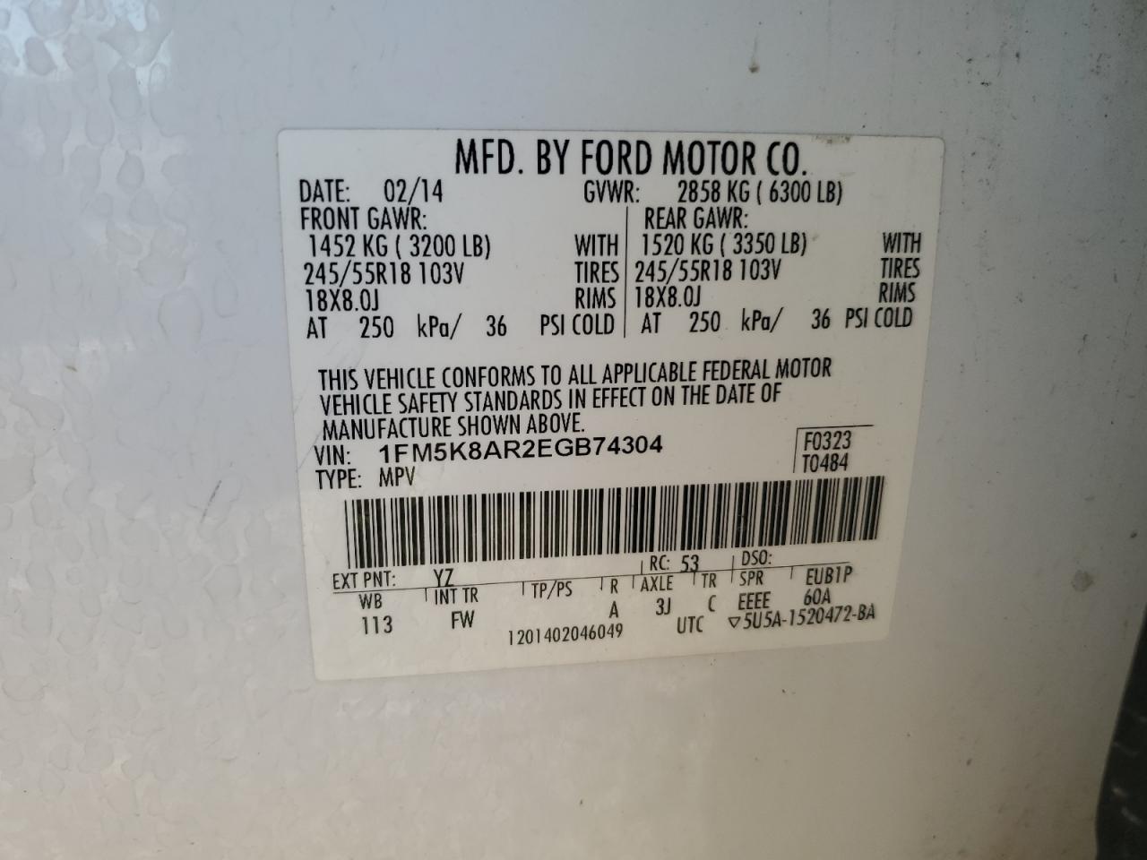 VIN: 1FM5K8AR2EGB74304