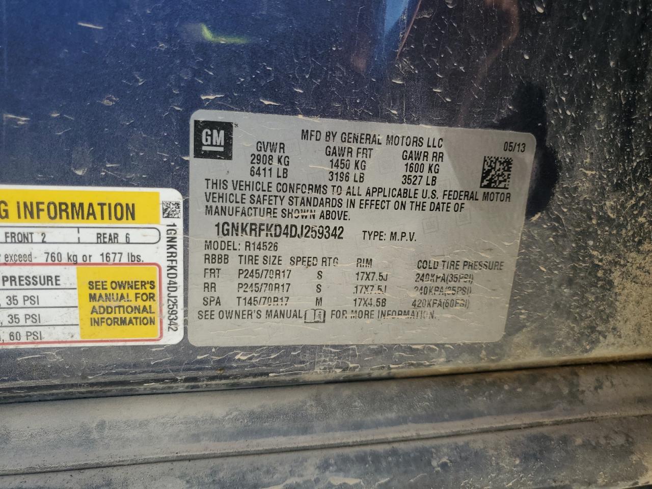 VIN: 1GNKRFKD4DJ259342
