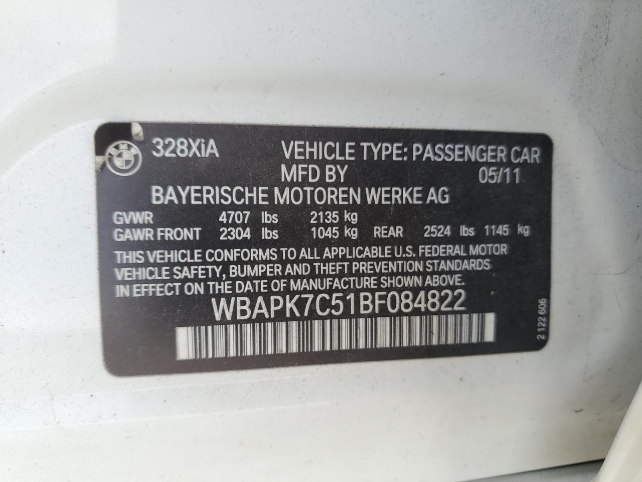 VIN: WBAPK7C51BF084822