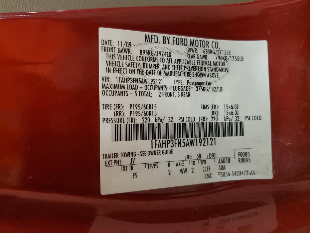 VIN: 1FAHP3FN5AW192121