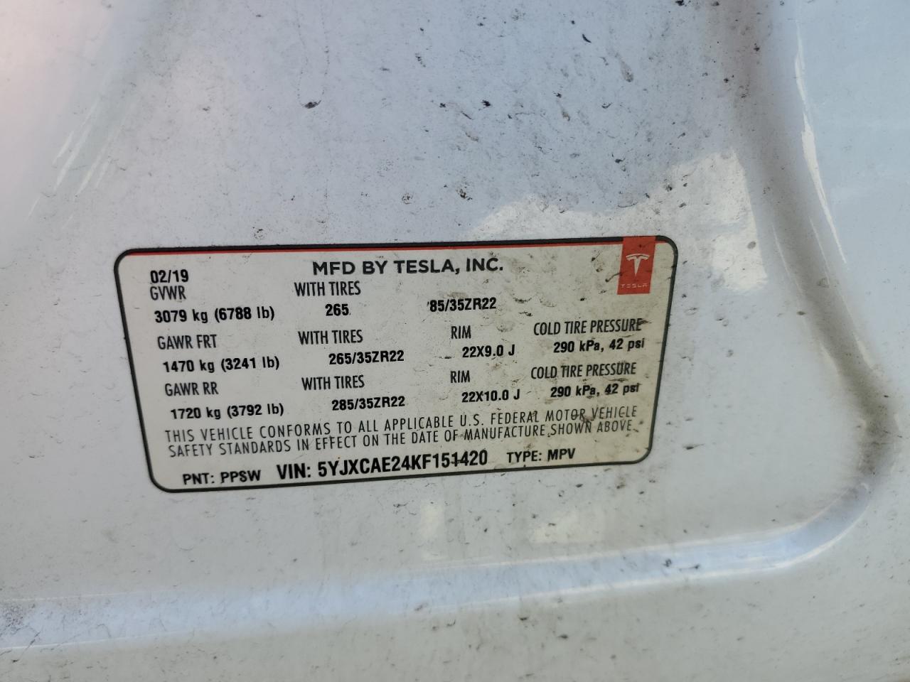 VIN: 5YJXCAE24KF151420