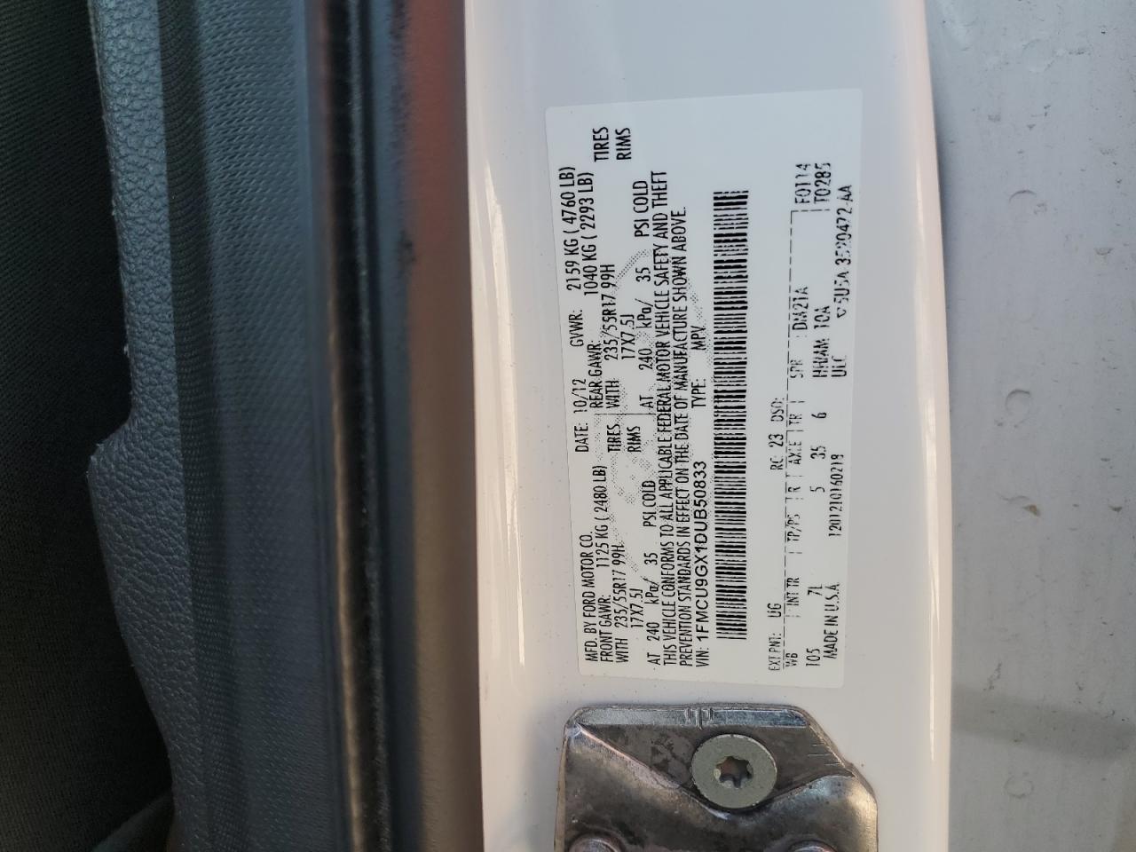 VIN: 1FMCU9GX1DUB50833