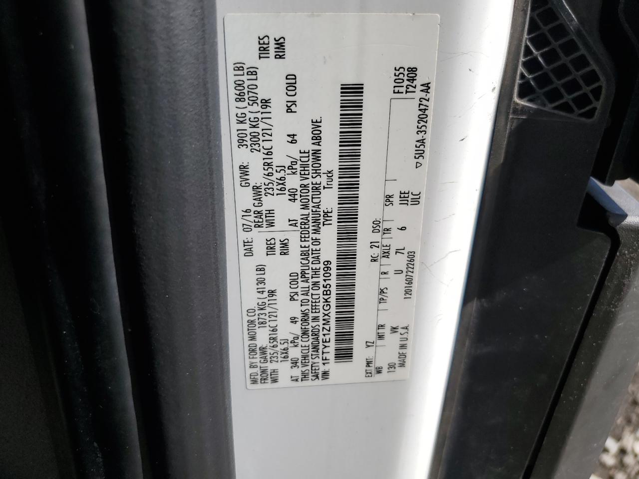 VIN: 1FTYE1ZMXGKB51099