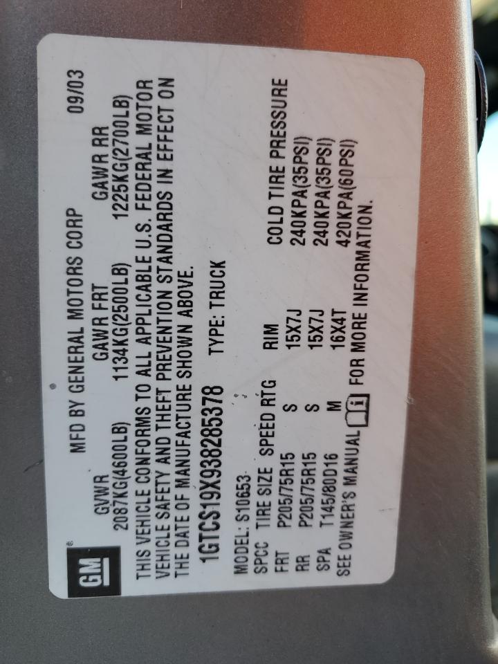 VIN: 1GTCS19X938285378