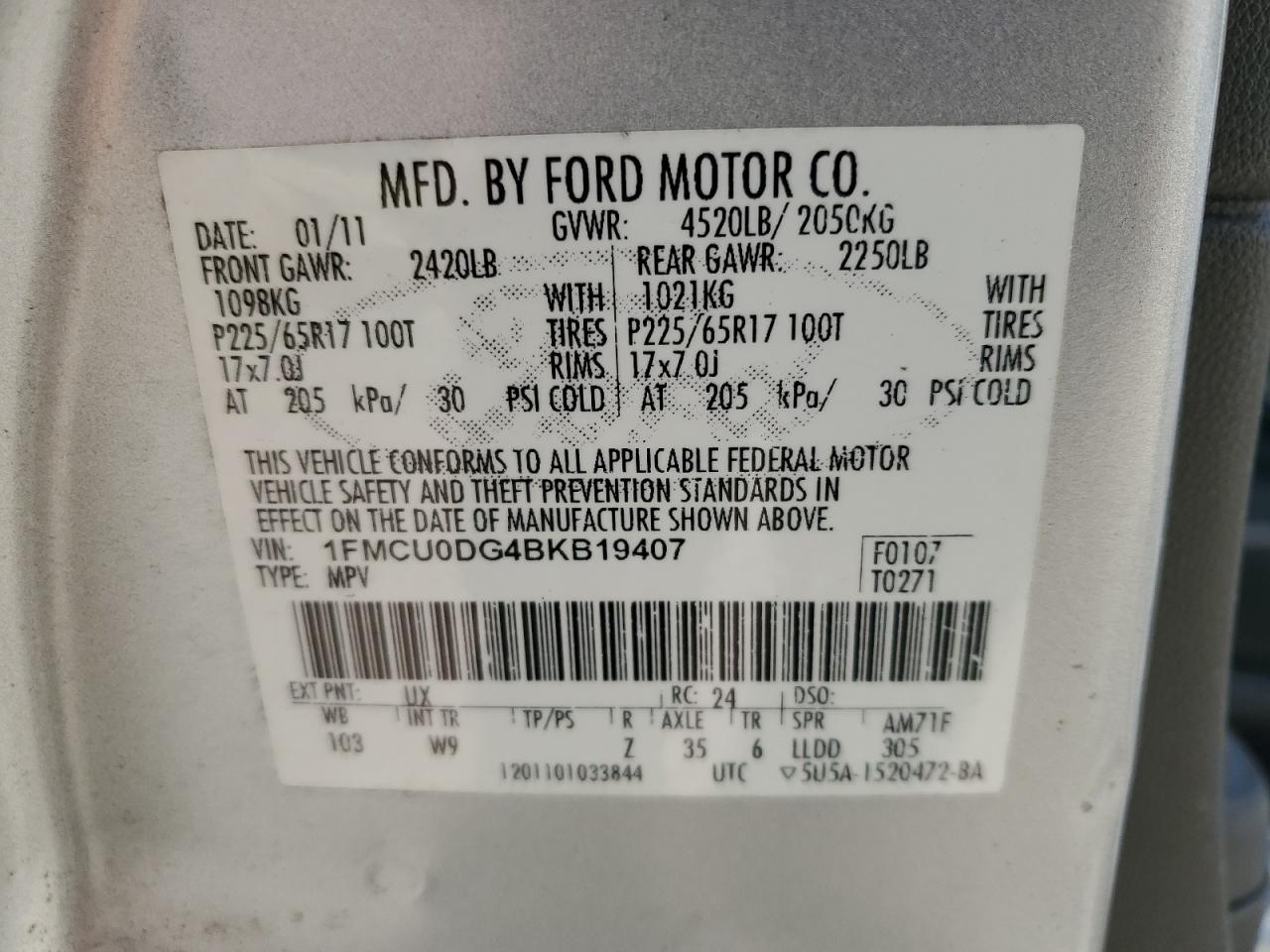 VIN: 1FMCU0DG4BKB19407