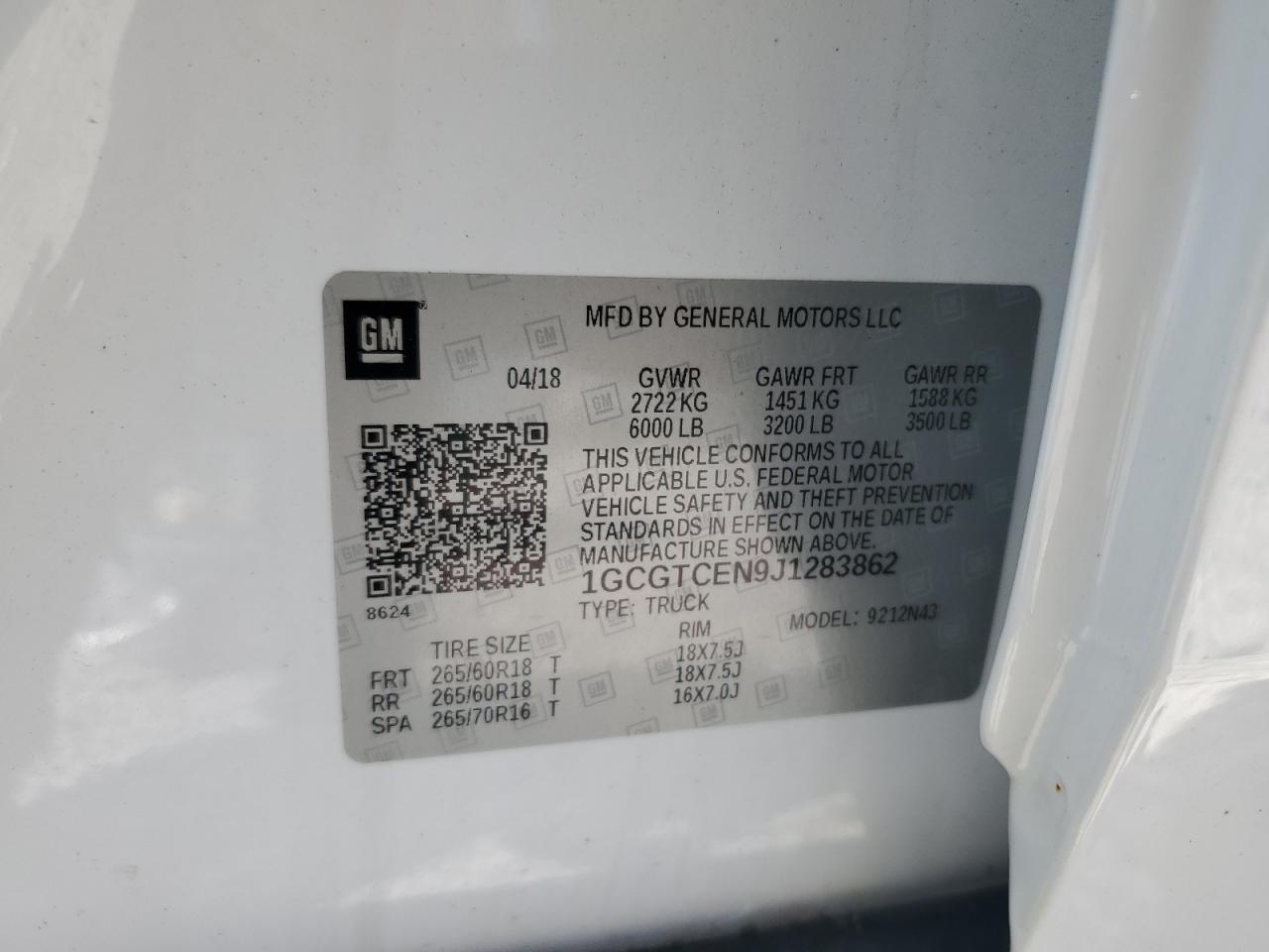 VIN: 1GCGTCEN9J1283862