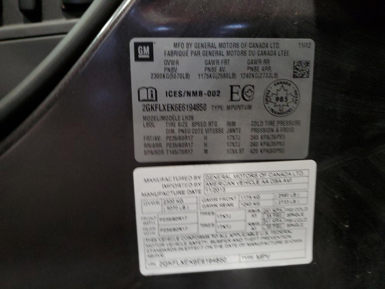 VIN: 2GKFLXEK6E6194850