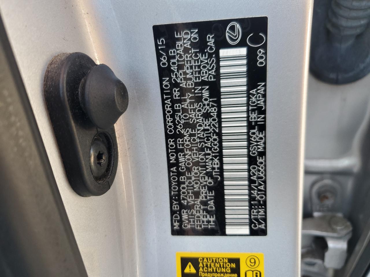 VIN: JTHBK1GG0F2204871