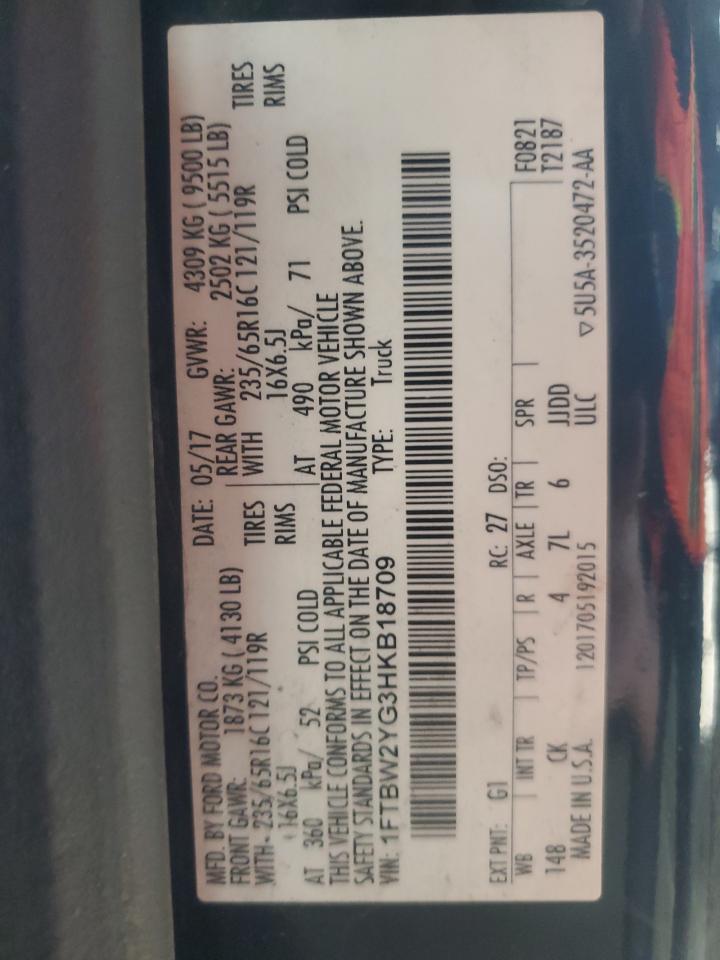 VIN: 1FTBW2YG3HKB18709