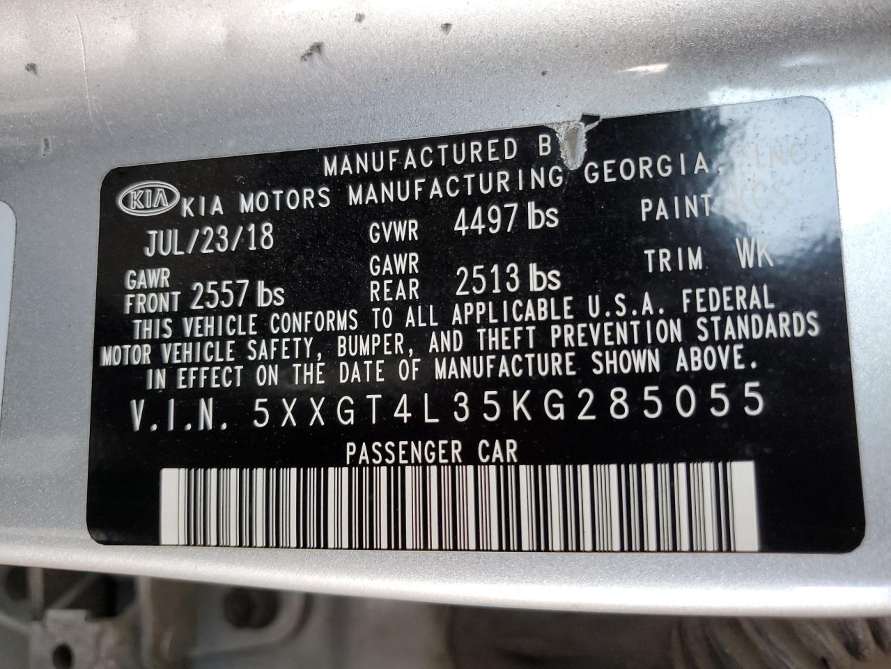 VIN: 5XXGT4L35KG285055