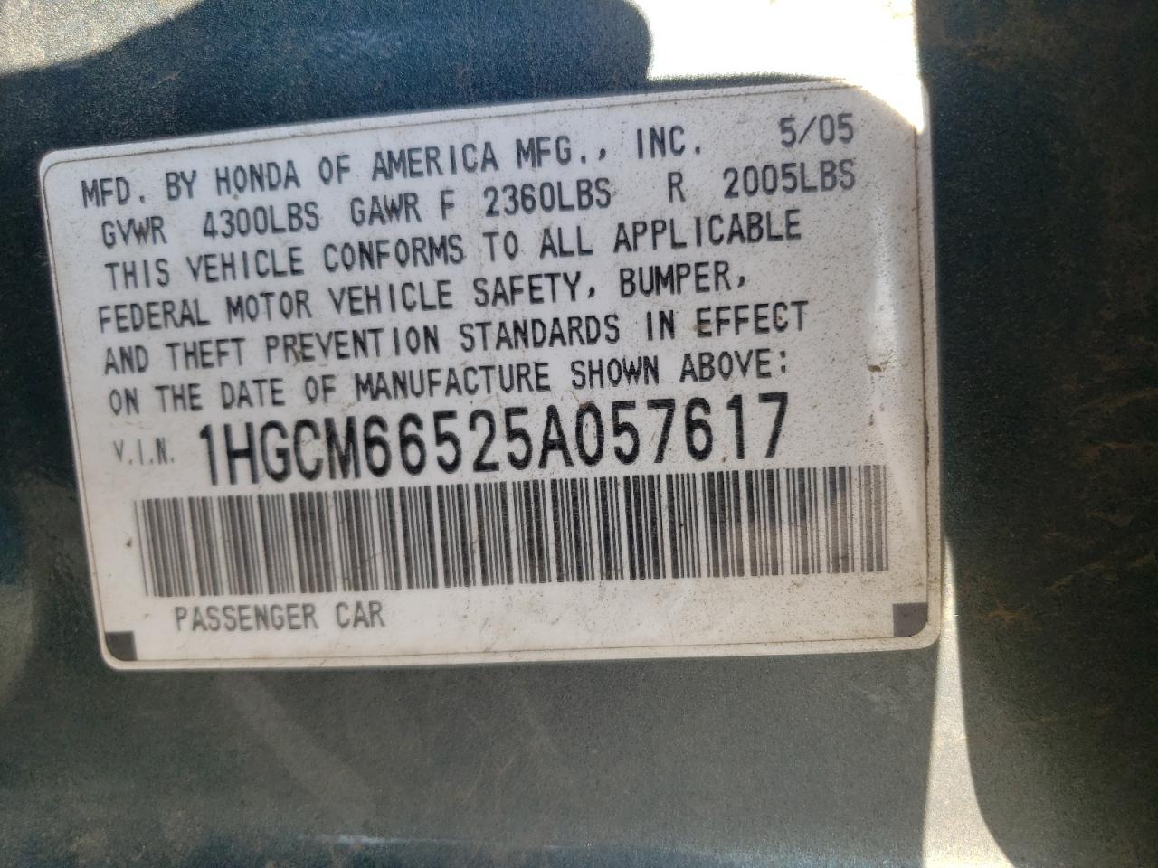 VIN: 1HGCM66525A057617