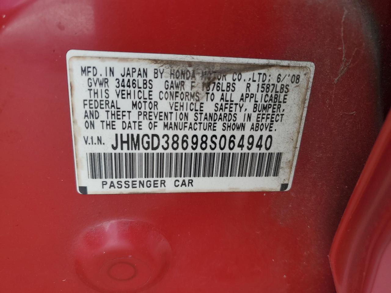 VIN: JHMGD38698S064940
