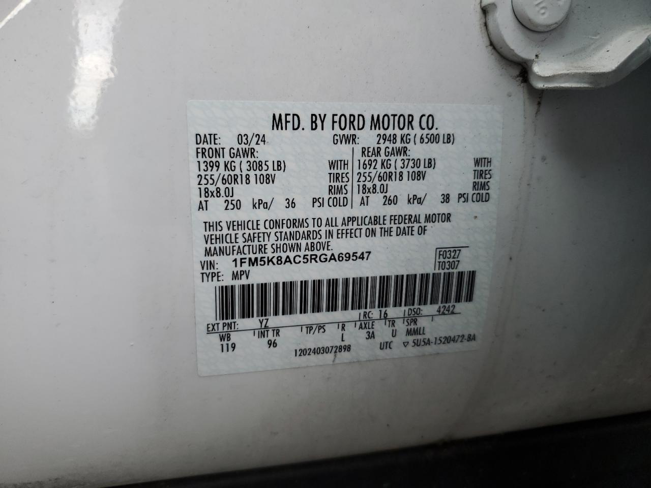 VIN: 1FM5K8AC5RGA69547
