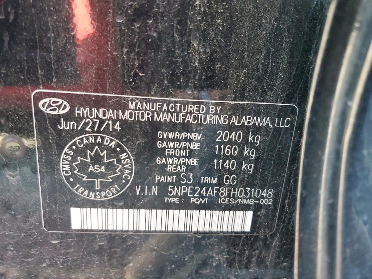 VIN: 5NPE24AF8FH031048
