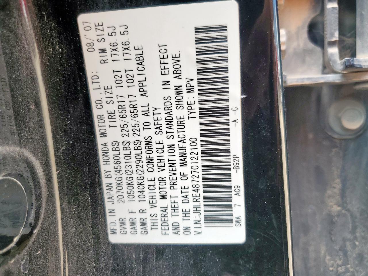 VIN: JHLRE48727C122100