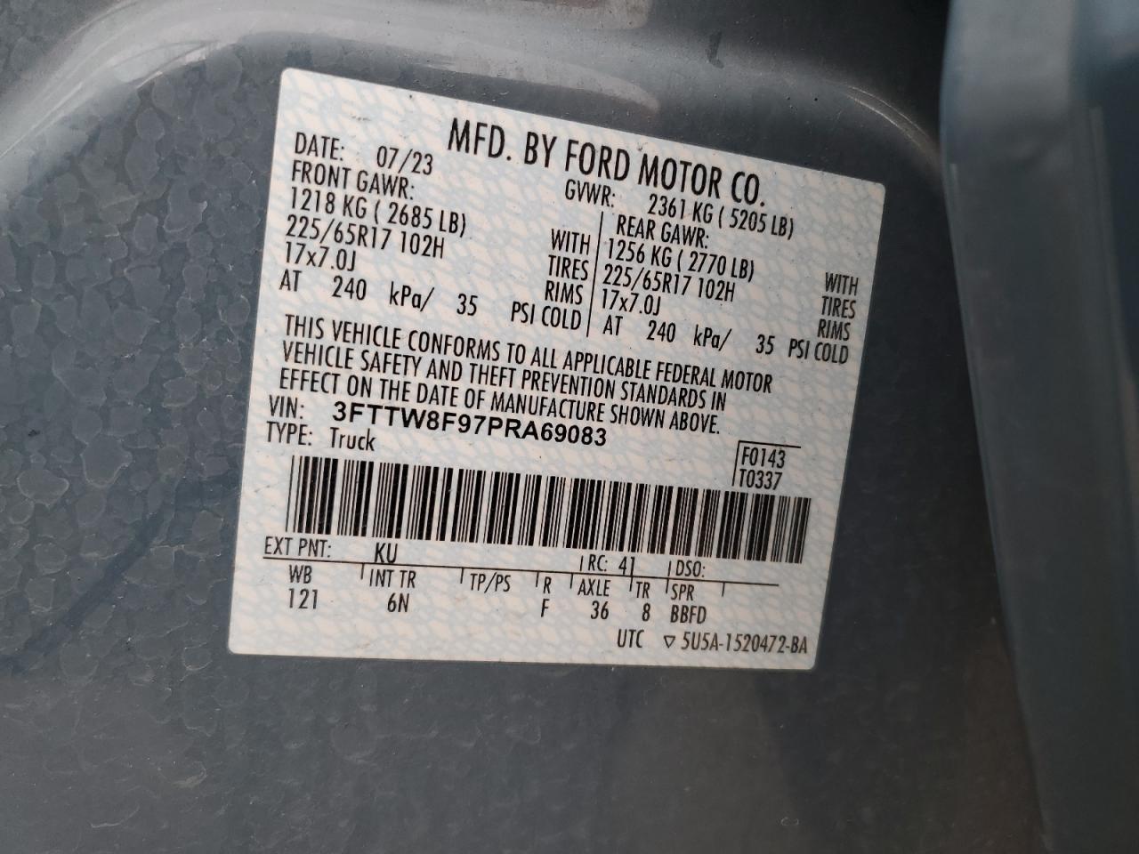 VIN: 3FTTW8F97PRA69083