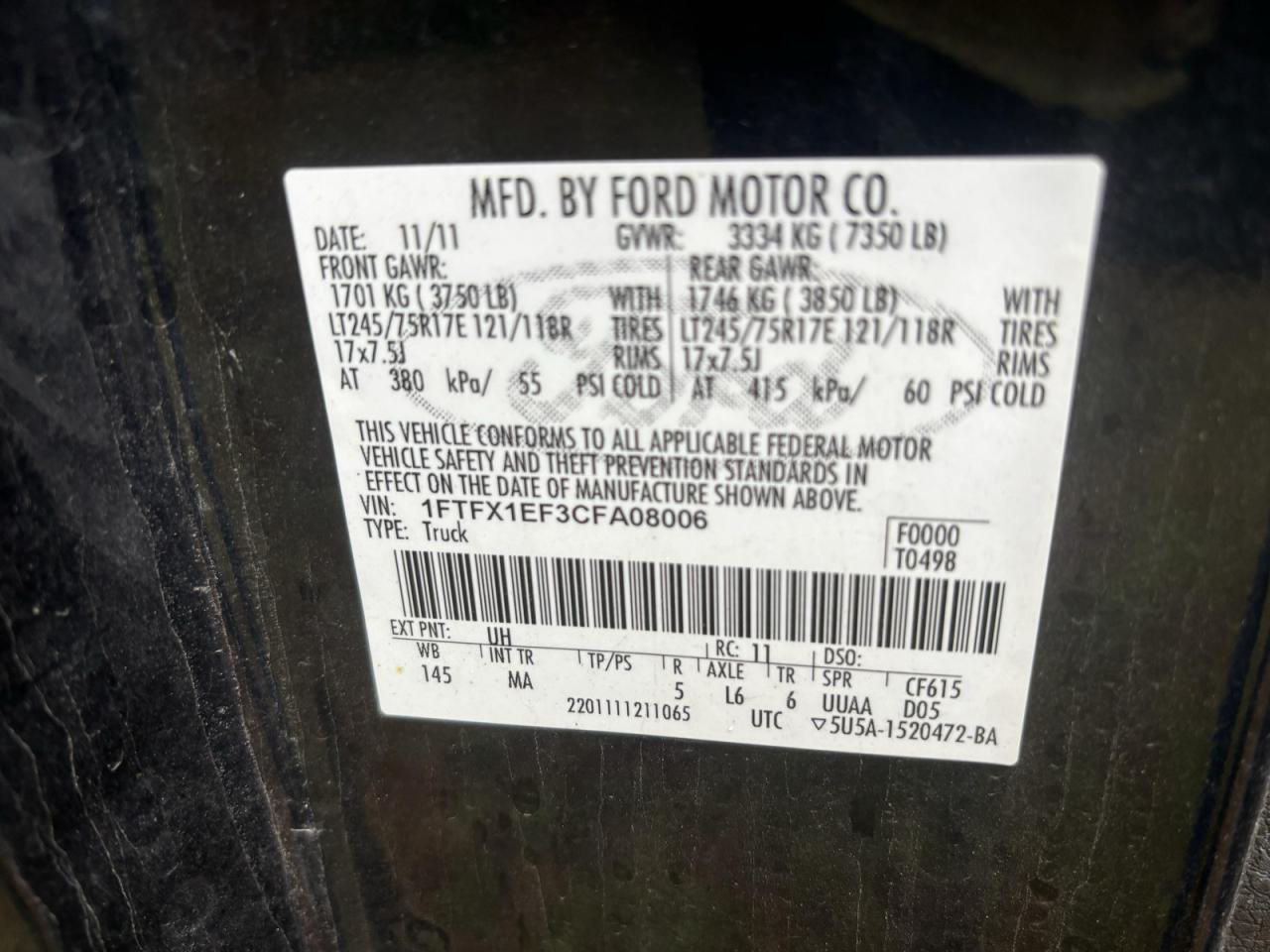 VIN: 1FTFX1EF3CFA08006