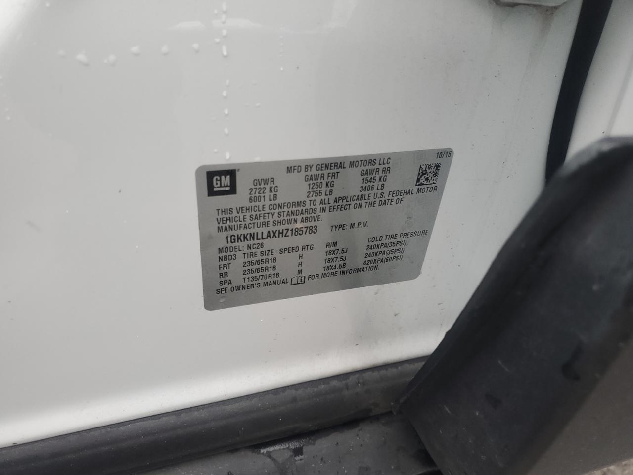 VIN: 1GKKNLLAXHZ185783