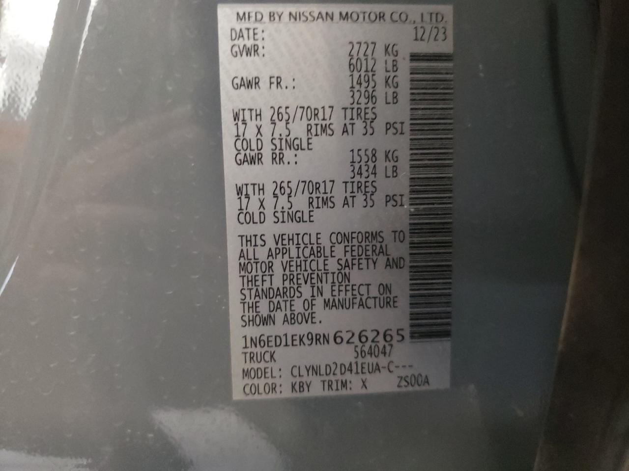 VIN: 1N6ED1EK9RN626265
