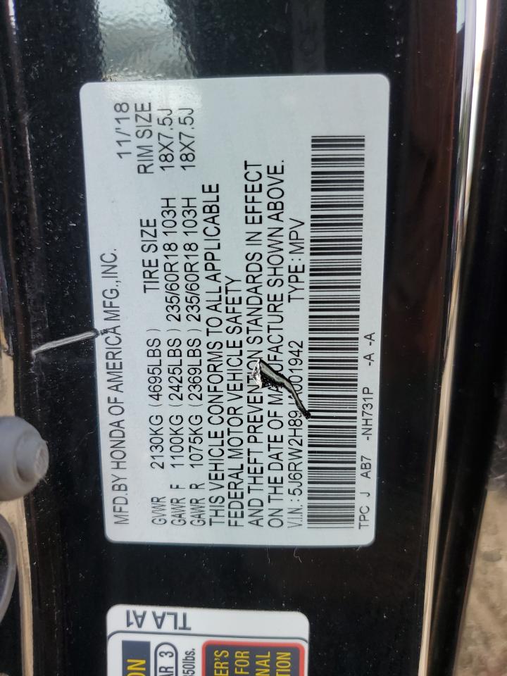 VIN: 5J6RW2H89JA001942
