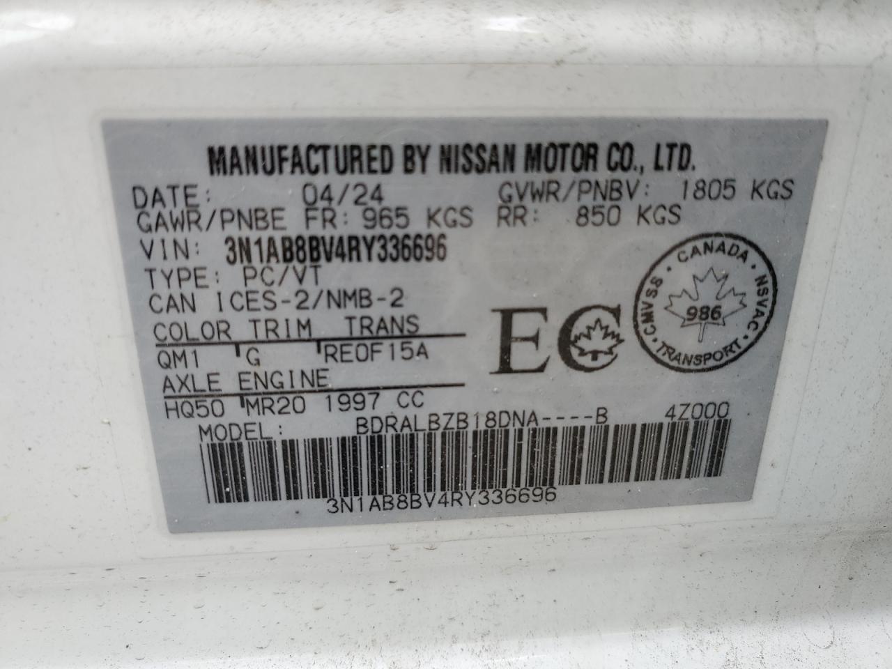VIN: 3N1AB8BV4RY336696