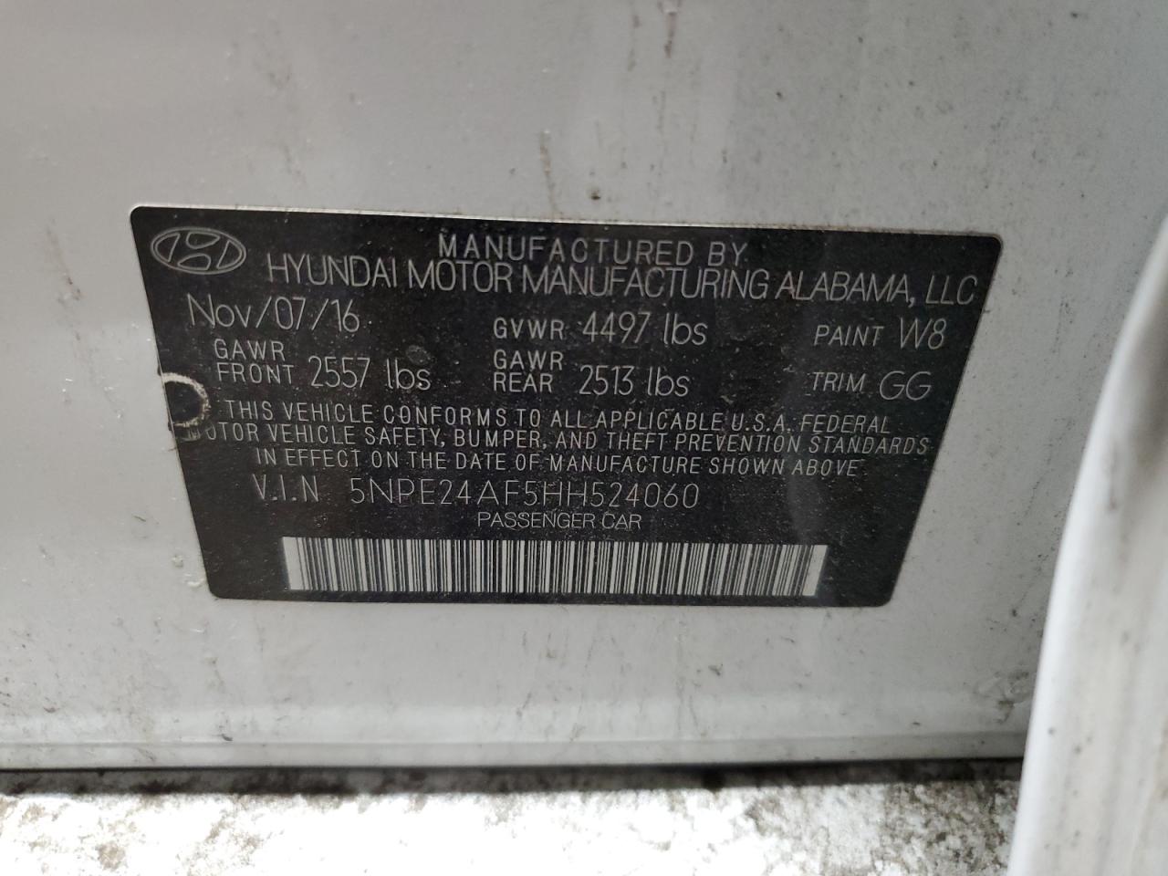VIN: 5NPE24AF5HH524060