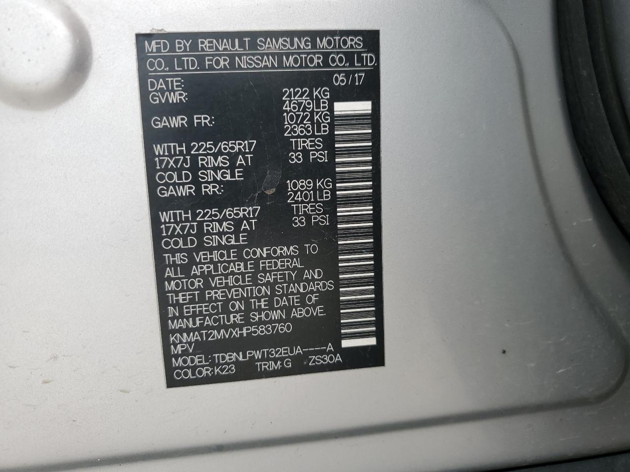 VIN: KNMAT2MVXHP583760