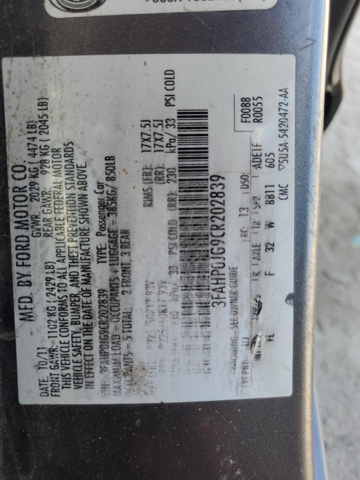 VIN: 3FAHP0JG9CR202839