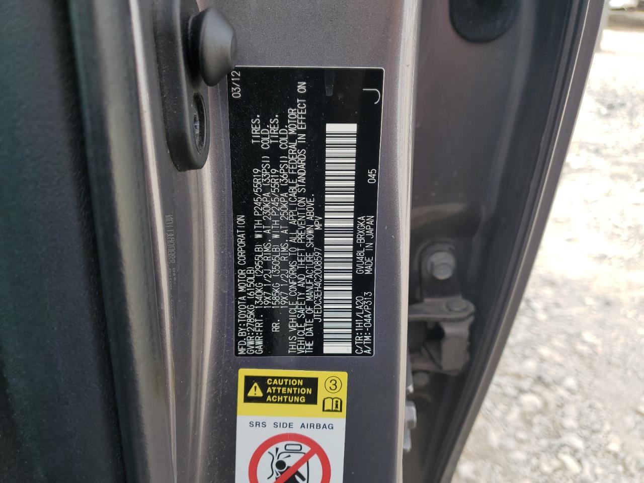 VIN: JTEDC3EH4C2008597