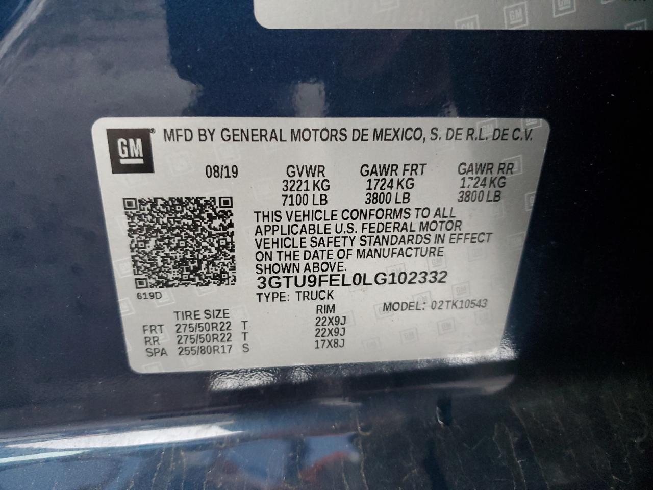 VIN: 3GTU9FEL0LG102332