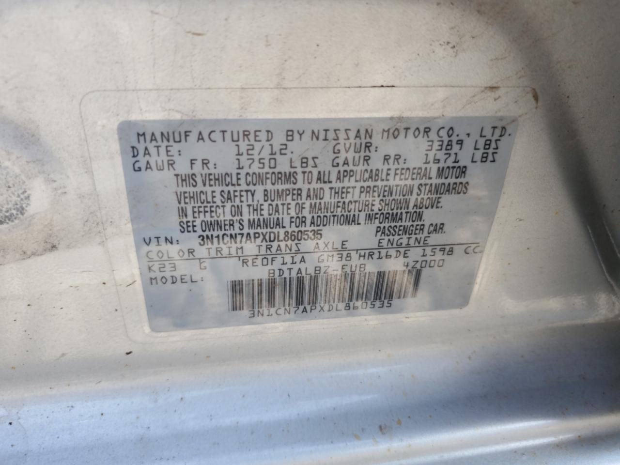 VIN: 3N1CN7APXDL860535