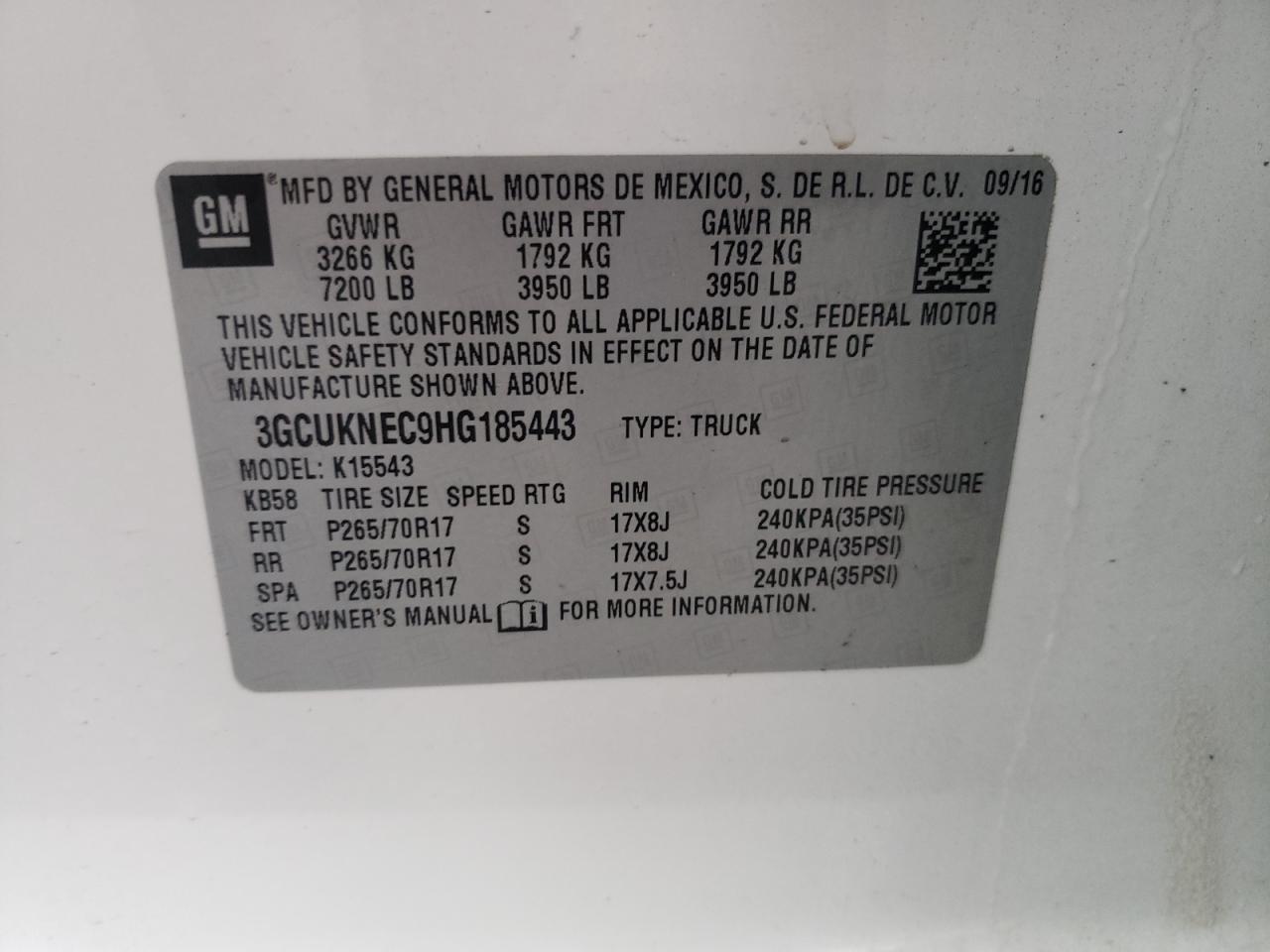 VIN: 3GCUKNEC9HG185443