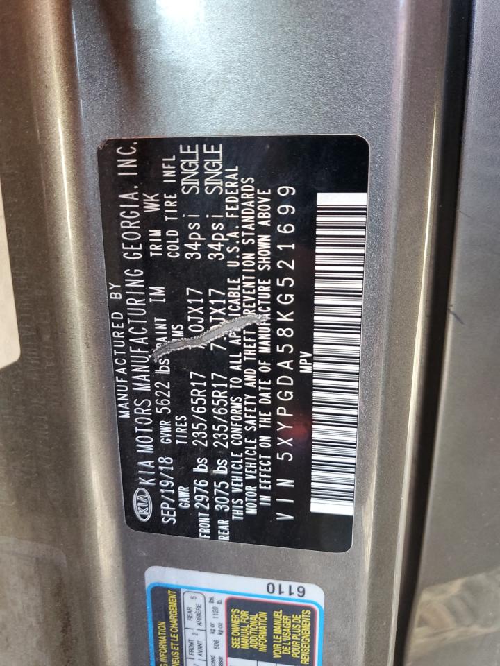 VIN: 5XYPGDA58KG521699