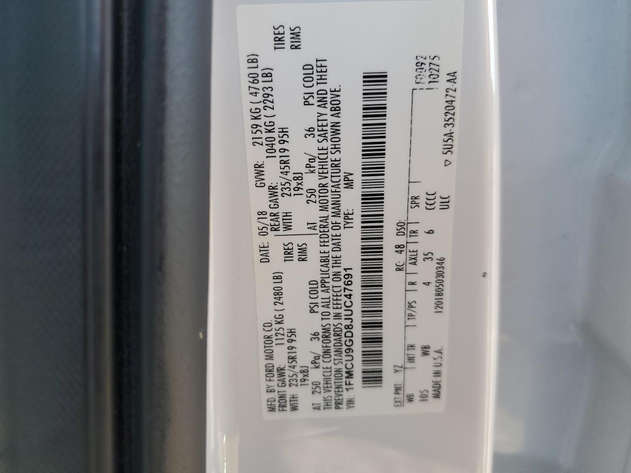 VIN: 1FMCU9GD8JUC47691